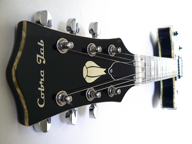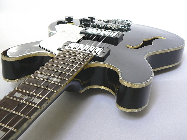 The Cobra Jab SE Supreme is a classic Double Cutaway hollow body guitar with two F-holes. The SE Supreme comes with a maple set-neck, maple top and mahogany back & sides. The neck inlays are beautifully assembled with a mix of differently colored abalone blocks. |